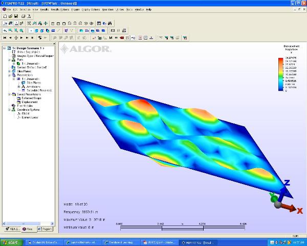 This class was a pretty interesting course. The beginning of the course started with a review of Linear Algebra and an introduction to the Finite Element Analysis process. We then began to work with the Algor Finite Element Analysis software. One of our first homeworks involved figuring the stress in a part and then making the part in Algor and then verifying that our hand calculations are correct. The beauty of this software is that once you know the software has a good working model, you can increase your mesh size and have the computer get much more accurate.
