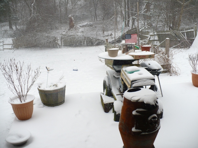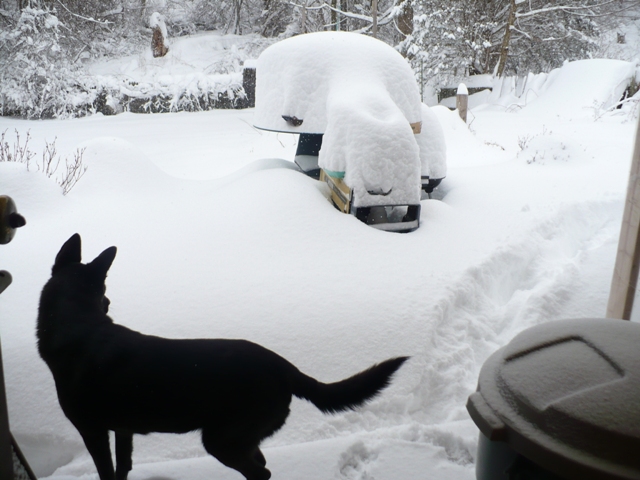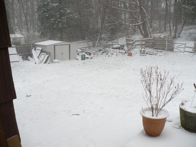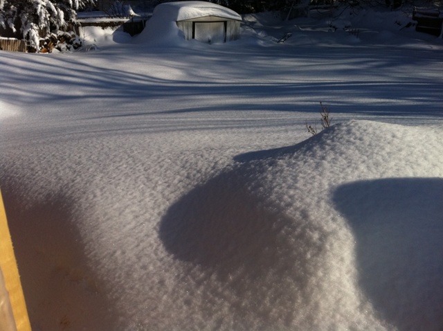 Third snow, really getting sick of this, dogs are fighting to find bathroom space! Shed roof ... snow piling up ... |