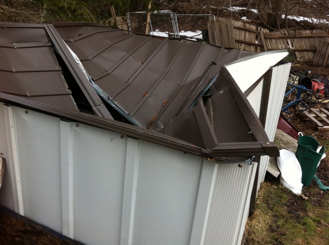 So it's now late March 2011, there is some carnage from the four or five feet of snow we had this winter, definitely the most snow I can ever remember and they say it's a new record! As you can see below, the shed roof couldn't handle the snow load and collapsed, one of my favorite