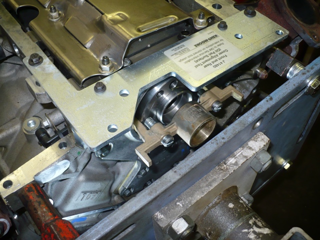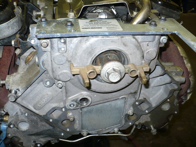 Special alignment tools in place to align rear cover to crank and oil pan |