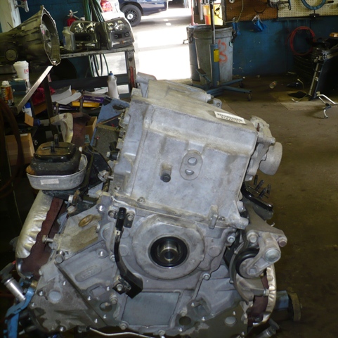 Engine hanging, you can see AWD differential bolted through engine oil pan |