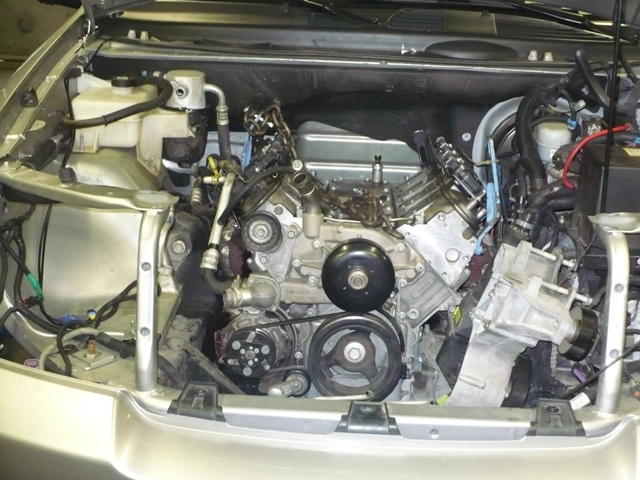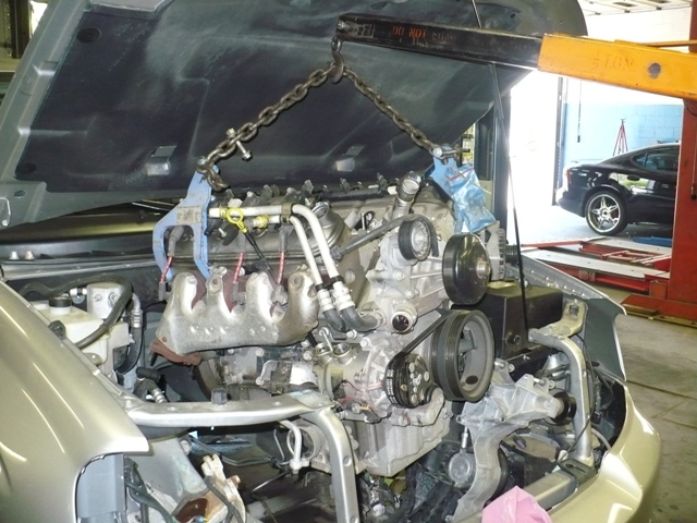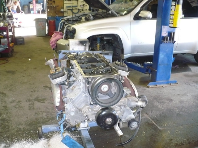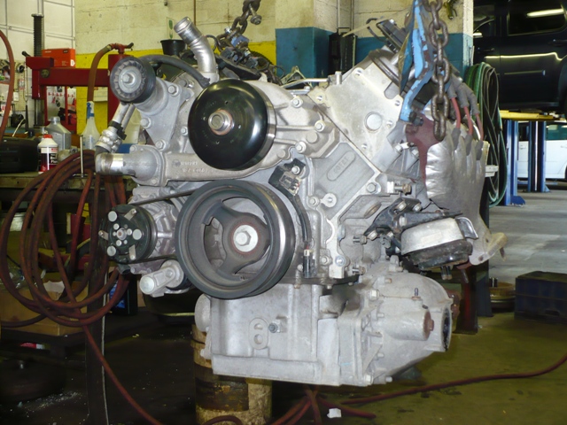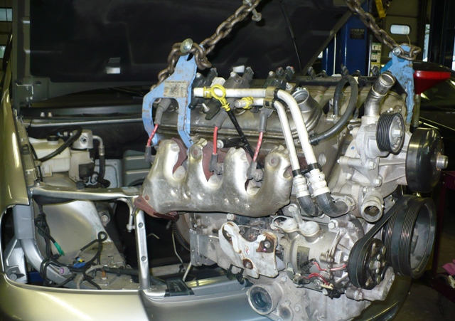Monstrous 6.0 Liter engine coming out, this thing sure fills the engine compartment! |