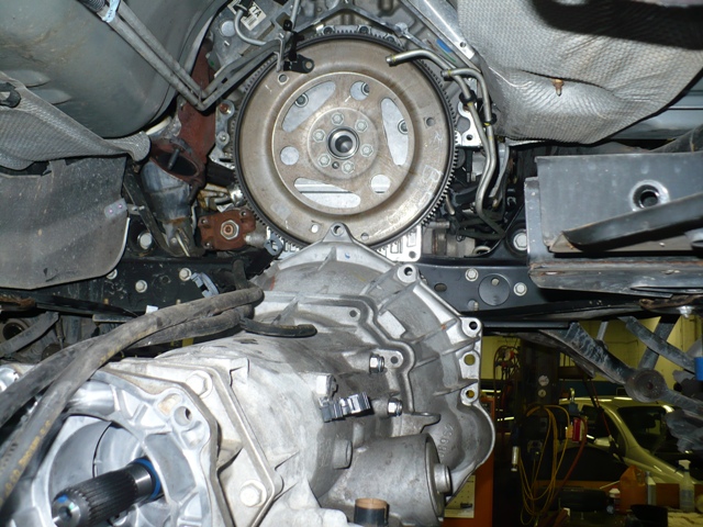 differential going through the oil pan and takes 16.8 hours warranty time to R&R, I decided to pull the tranny to make sure it wasn't a cracked flywheel or something silly like that. After this was done, flywheel looks good,