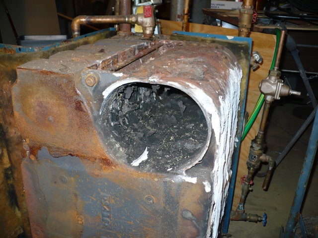 see that the combustion chamber liner is falling in on itself and the intercooler and flue passages are filling with soot much too quickly. The hot water started to fail, but it heated the house OK so I installed