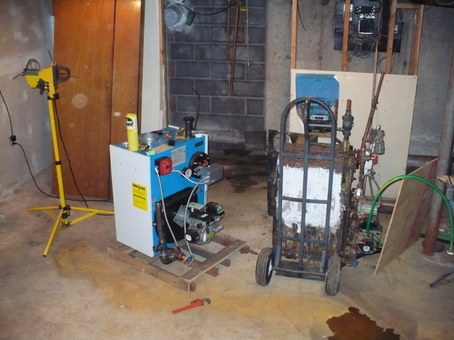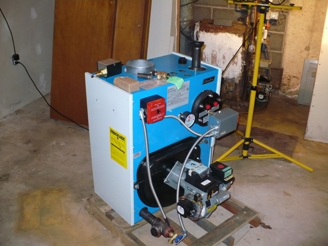 of the electric water heater and the inefficiency of the old unit prompted me to try and find a new one. When it finally crapped out altogether in June, I bought a brand new Slant Fin TR 30HP boiler unit.