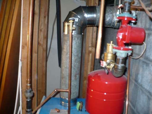 new valves and pumps. I first started by putting the new diaphragm expansion tank with air separator close to the boiler where it will take advantage of the hottest point with the most