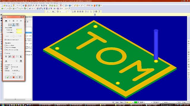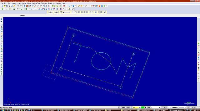 I then wrote the Mastercam program with the block with initials, contour around edge and holes.
